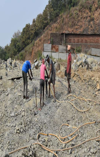 2.21: Line Drilling has already being done all round the periphery of the blasting area